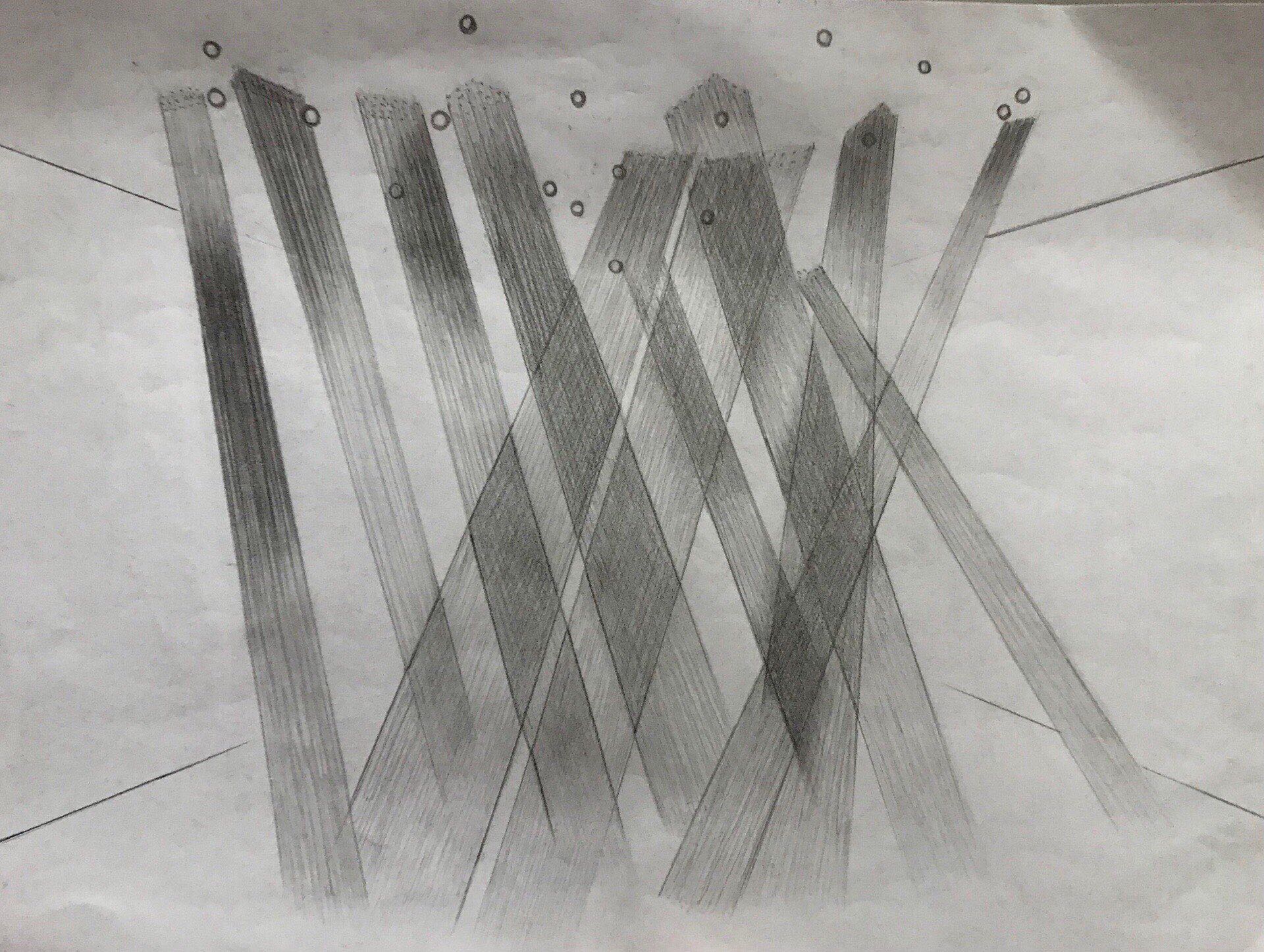 Consegui associar as linhas dos fios com as arestas do prédio. Cada linha seguia por um sentido diferente, umas mais retas, outras mais na diagonal. Isso é uma característica do prédio, que não é 100% quadricular, é como se fosse um cubo dentro de outro mais inclinado.